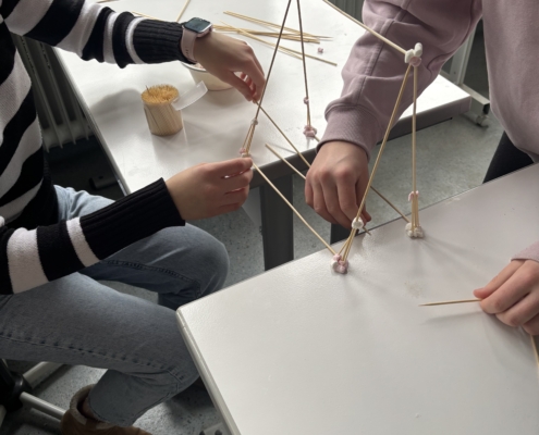 Frau Gross, selbst Studentin der Hochschule Koblenz, gab einen kurzen thematischen Einstieg in den Studiengang. Anschließend erhielten die Teilnehmerinnen und Teilnehmer einen praxisnahen Einblick in die Welt des Bauingenieurwesens und bauten ihre eigenen Brückenkonstruktionen.