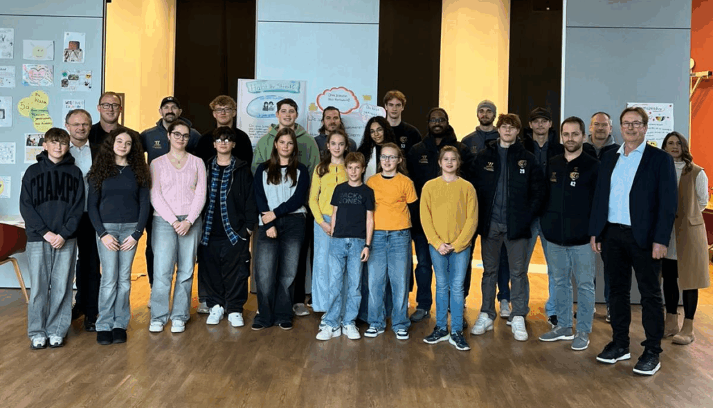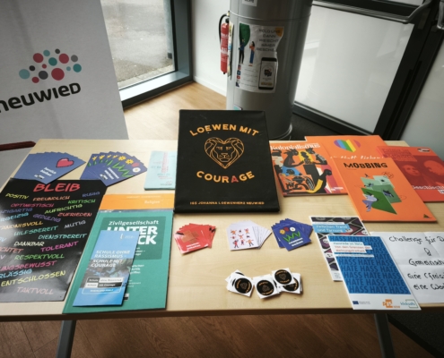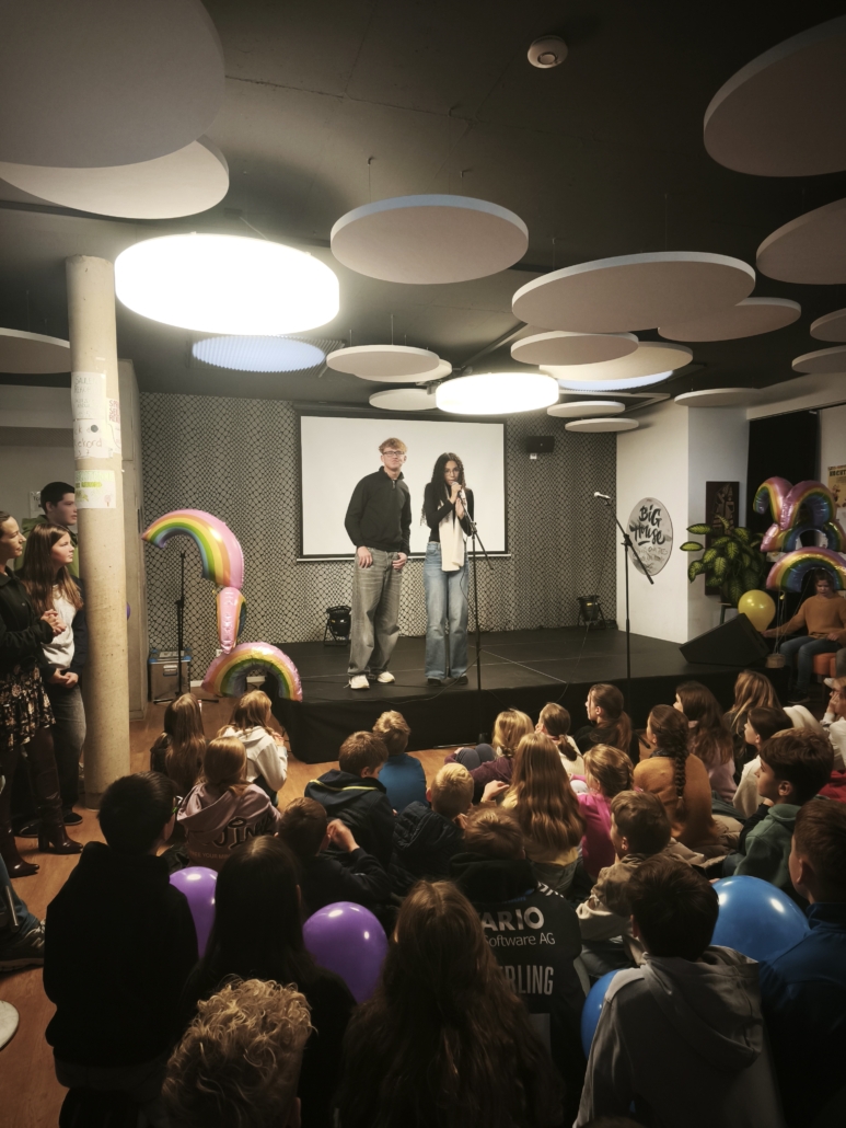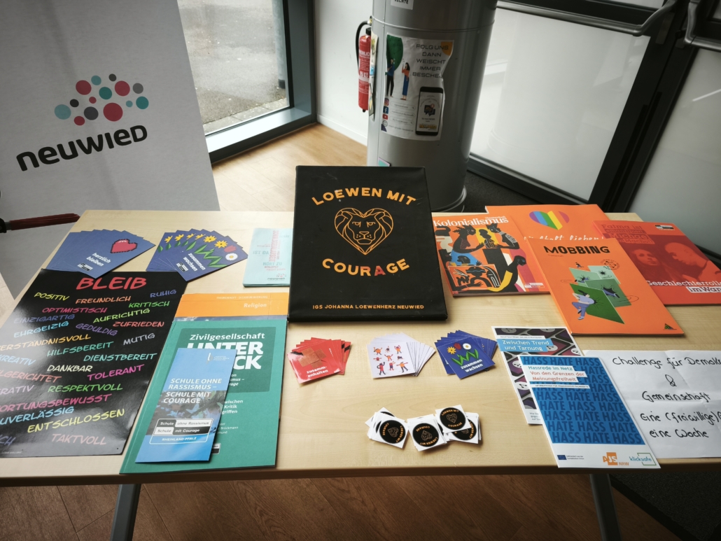 Zur Eröffnungsfeier durften wir zahlreiche wichtige Partner und Gäste begrüßen, darunter die Eishockey-Spieler der Bären Neuwied mit Fabian Illigens als Partner unserer Initiative „Schule ohne Rassismus – Schule mit Courage, Herrn Rasbach (1. Kreisbeigeordneter), Herrn Einig (Oberbürgermeister), sowie Vertreterinnen und Vertreter der VHS, der Johanniter, der Polizei und der Schulsozialarbeit der Stadt.
