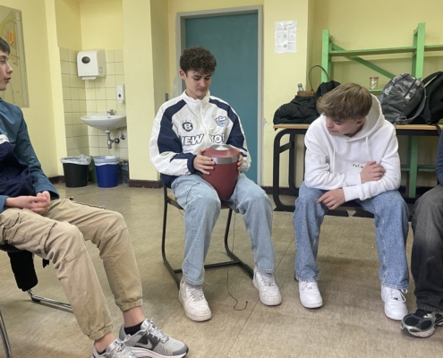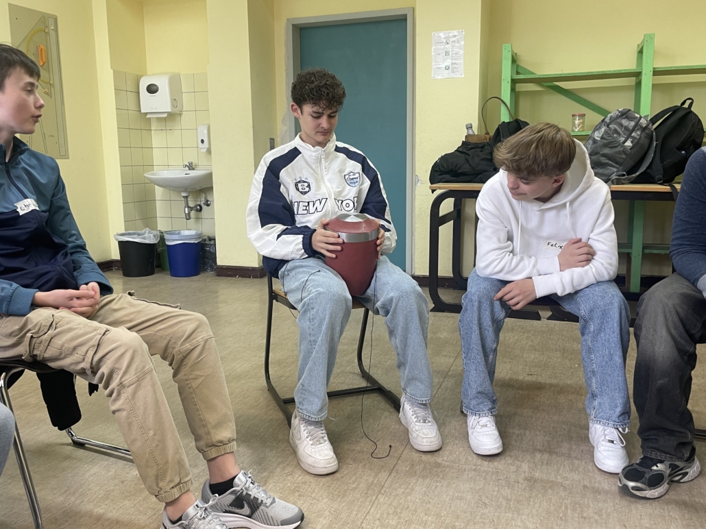 Im Verlauf des ersten Projekttages wurde zunächst erfahrbar gemacht, dass Sterben ein natürlicher Teil des Lebens ist und jeden betreffen kann. Ein eindrucksvolles Spiel verdeutlichte dies, als einzelne Teilnehmende plötzlich und kommentarlos den Raum verlassen mussten. „Man wollte noch etwas zu Ende erzählen und musste plötzlich gehen“, berichtete eine Schülerin.