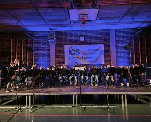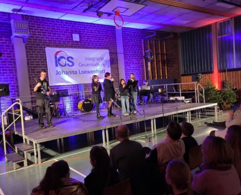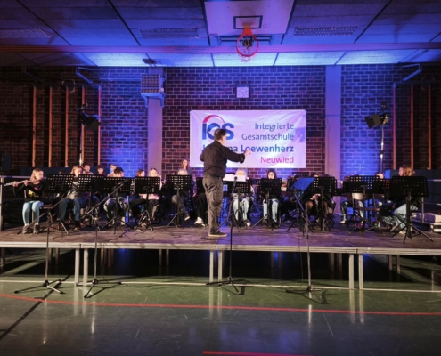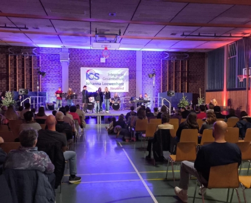 Für eine besonders schöne Atmosphäre sorgten die Eltern der Klasse 6b, die die Sporthalle mit beeindruckender Lichttechnik und liebevoller Dekoration ausstatteten. Zudem übernahmen sie die Bewirtung der Gäste und trugen so wesentlich zum gelungenen Verlauf des Abends bei. Neben allerlei Süßwaren und warmen und kalten Getränken, fand vor allem die türkische Linsensuppe großen Anklang. Außerdem wurden einige liebevoll selbstgebastelte Objekte zur Dekoration angeboten. Die Einnahmen des Konzertabends werden an das ambulante Hospiz Neuwied gespendet sowie für die Bläserklassenarbeit an der IGS Neuwied genutzt.