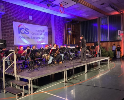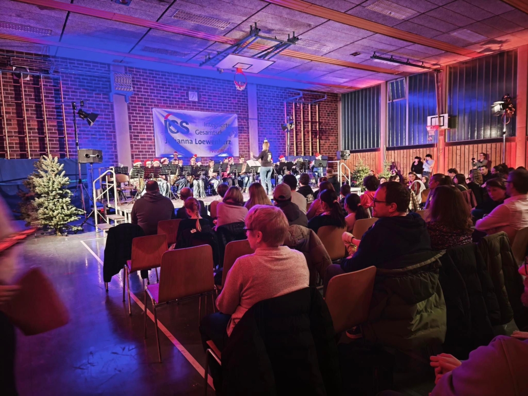 Mitwirkende Ensembles waren die Bläserklasse 5b, das Schulorchester und der WPF MuK 10 Kurs von Frau Keßing sowie die Bläserklasse 6b, die Big-Band und die Schüler-Rockband unter der Leitung von Herrn Seibeld. Mit viel Engagement und musikalischem Können präsentierten die jungen Musikerinnen und Musiker ein abwechslungsreiches Programm, das von klassischen weihnachtlichen Klängen bis hin zu modernen Stücken reichte und beim Publikum großen Anklang fand.
