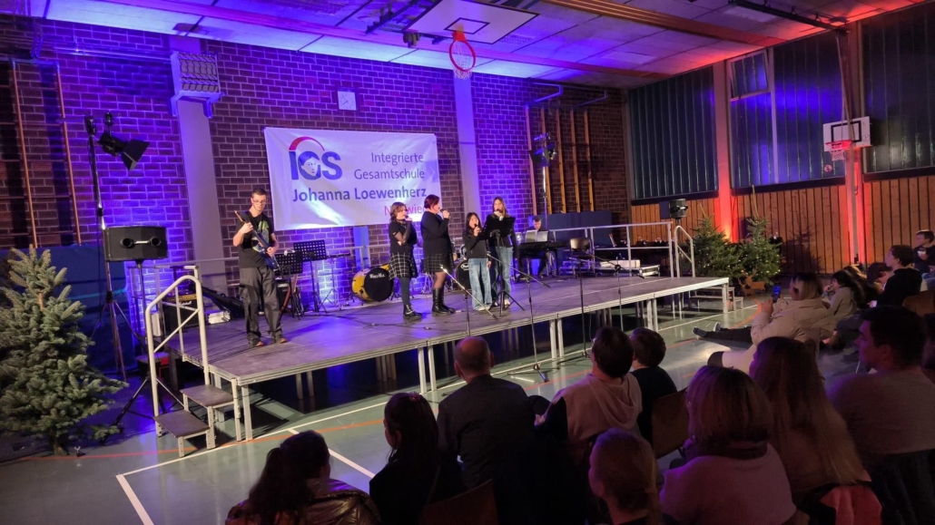 Am 18. Dezember fand in der festlich geschmückten Sporthalle des Gebäudes Gelb das diesjährige Weihnachtskonzert unserer Schule statt. Zahlreiche Schülerinnen und Schüler, Lehrkräfte sowie Eltern waren gekommen, um gemeinsam einen stimmungsvollen musikalischen Abend zu erleben.